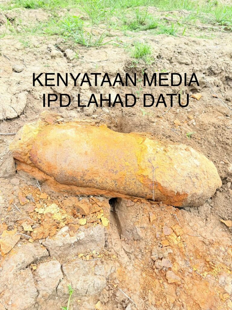 Lahad Datu: Polis Daerah Lahad Datu mengesahkan penemuan satu objek disyaki bom lama jenis Unexploded Ordnance (UXO) Aerial Bomb di tebing Sungai Segama, Lahad Datu pada pagi Ahad.