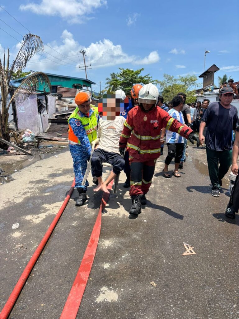 Tawau: Seorang lelaki warga emas berusia 71 tahun cedera melecur pada bahagian tangan selepas kebakaran memusnahkan lapan buah rumah setinggan di Kampung Hidayat, Jalan Apas, Tawau tengah hari tadi.