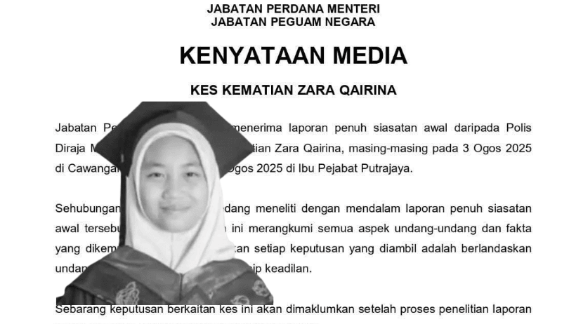 PUTRAJAYA: Jabatan Peguam Negara mengesahkan telah menerima laporan penuh siasatan awal daripada Polis Diraja Malaysia (PDRM) berhubung kes kematian Zara Qairina, masing-masing daripada Cawangan Sabah pada 3 Ogos dan Ibu Pejabat PDRM Putrajaya pada 4 Ogos.