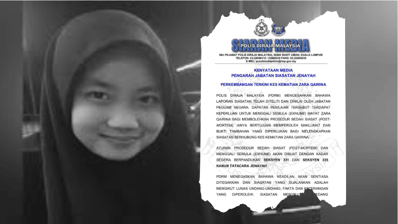 KUALA LUMPUR: Polis Diraja Malaysia (PDRM) mengesahkan bahawa kubur pelajar berusia 13 tahun, Allahyarhamah Zara Qairina Mahathir, akan digali semula bagi membolehkan prosedur bedah siasat (post-mortem) dilakukan.