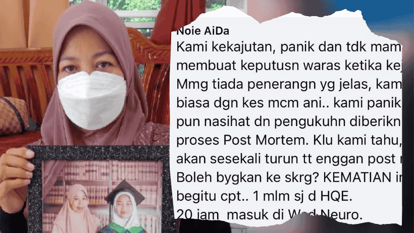 “Memang tiada penerangan yang jelas, kami bukan biasa dengan kes macam ani. Kami panik, tiada satu pun nasihat dan pengukuhan diberikan akan proses bedah siasat.