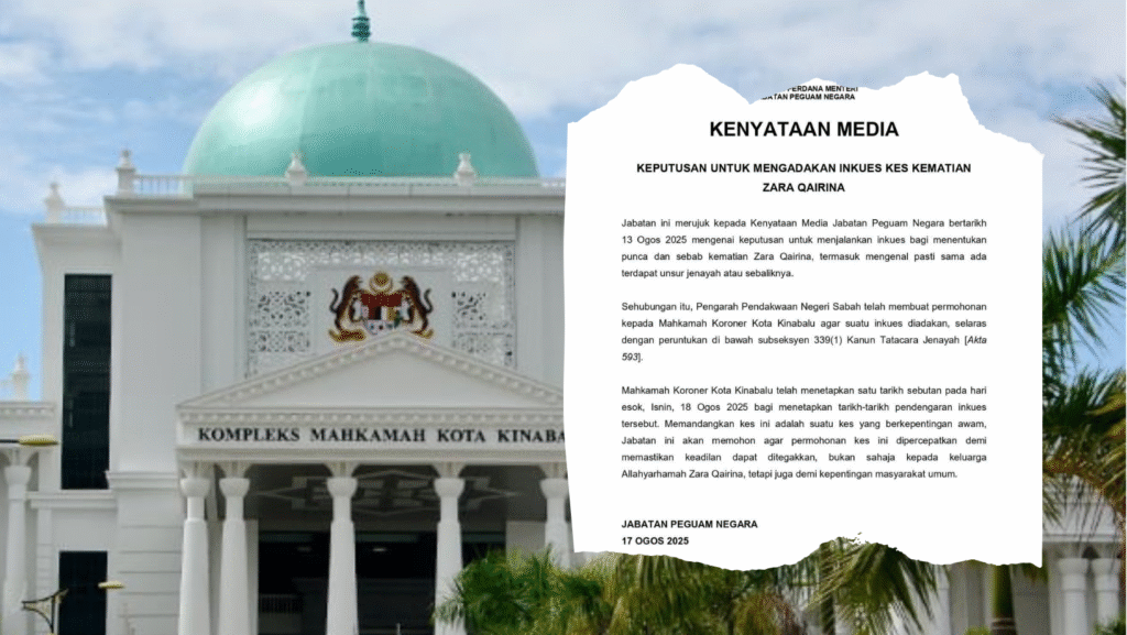 “Pengarah Pendakwaan Negeri Sabah telah mengemukakan permohonan rasmi kepada Mahkamah Koroner Kota Kinabalu untuk mengadakan prosiding berkenaan, selaras dengan subseksyen 339(1) Kanun Tatacara Jenayah [Akta 593].