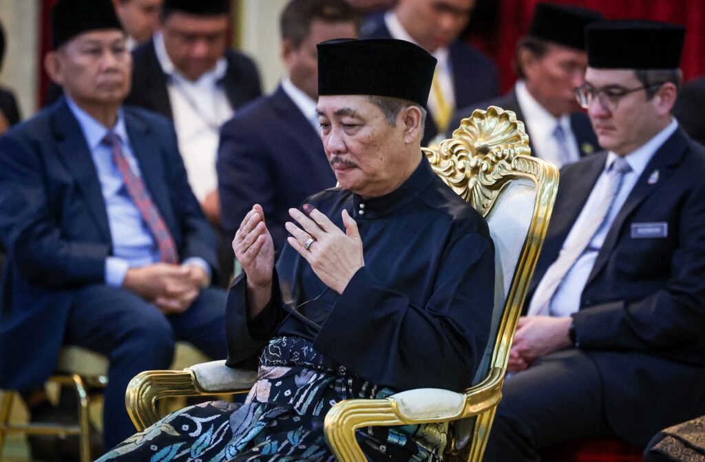 KOTA KINABALU, 30 Nov -- Pengerusi Gabungan Rakyat Sabah (GRS) Datuk Seri Hajiji Noor mengaminkan doa pada istiadat mengangkat sumpah jawatan sebagai Ketua Menteri Sabah untuk penggal kedua awal pagi ini. Hajiji, 70, yang memenangi kerusi Dewan Undangan Negeri (DUN) Sulaman pada Pilihan Raya Negeri (PRN) Sabah ke-17, mengangkat sumpah di hadapan Yang Dipertua Negeri Tun Musa Aman dalam istiadat di Istana Seri Kinabalu di sini. --fotoBERNAMA (2025) HAK CIPTA TERPELIHARA