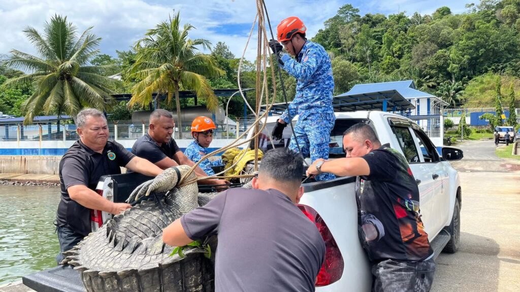 Buaya berkenaan kemudiannya dibawa ke darat menggunakan aset bot Polis Marin (PPM) sebagai langkah keselamatan awal.