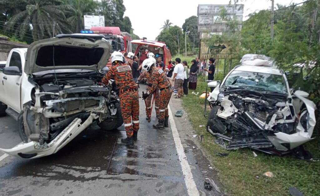 Ketua Balai BBP Lahad Datu, Sumsoa Rashid berkata, kemalangan melibatkan dua kenderaan iaitu Toyota Hilux dan Perodua Aruz yang bertembung.